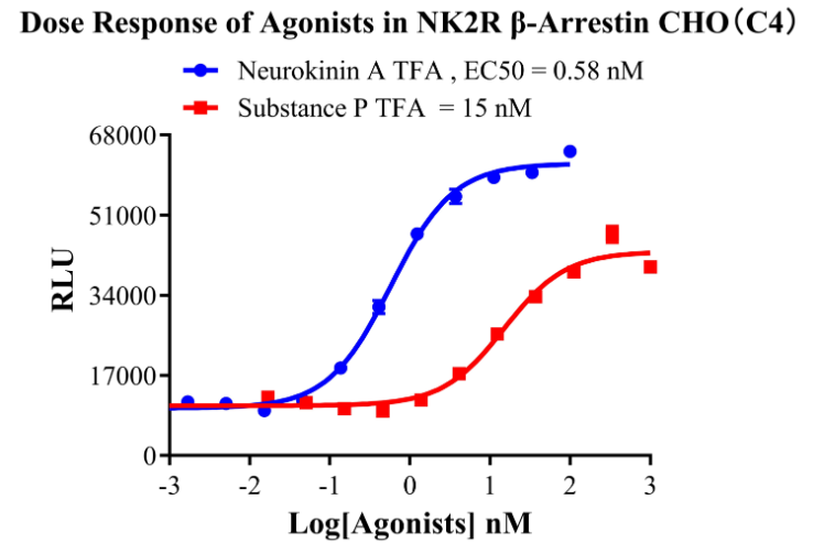 為了助力NK2R藥物的研發(fā),科佰生物及時(shí)開發(fā)了基于IP-One信號(hào)通路的NK2R細(xì)胞模型和基于β-Arrestin信號(hào)通路的細(xì)胞模型,用于候選藥物早期機(jī)理研究。