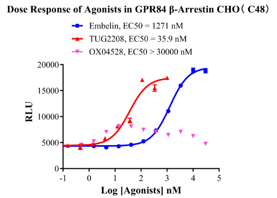 Figure 3. Dose Response of Agonists in GPR84 β-Arrestin CHO(C48).
