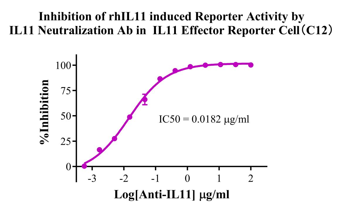 Figure 4. Inhibition of rhIL11 induced Reporter Activity by IL11 Neutralization Ab in IL11 Effector Reporter Cell(C12).