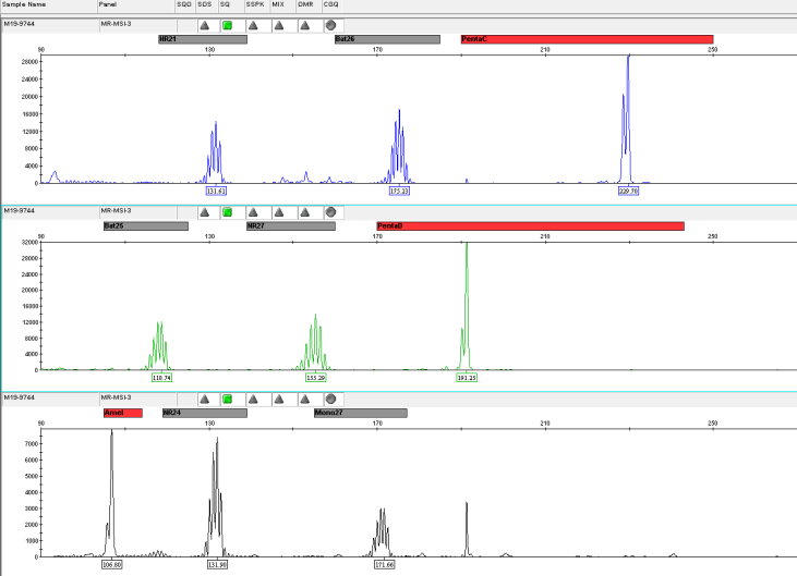 微衛(wèi)星是人類(lèi)基因組的一段串聯(lián)重復(fù)序列,一般在1~6bp之間,又被稱(chēng)作短串連重復(fù)(Short Tandem Repeats,STRs)或簡(jiǎn)單重復(fù)序列(Simple Sequence Repeat,SSRs)。 微衛(wèi)星不穩(wěn)定(Microsatellite Instability,MSI)指的是微衛(wèi)星重復(fù)次數(shù)減少或者增加,微衛(wèi)星不穩(wěn)定的內(nèi)在機(jī)制是錯(cuò)配修復(fù)(MMR)系統(tǒng)失調(diào),從而限制了糾正微衛(wèi)星自發(fā)的長(zhǎng)度改變的體細(xì)胞突變的能力,體細(xì)胞突變積累,最終形成MSI。