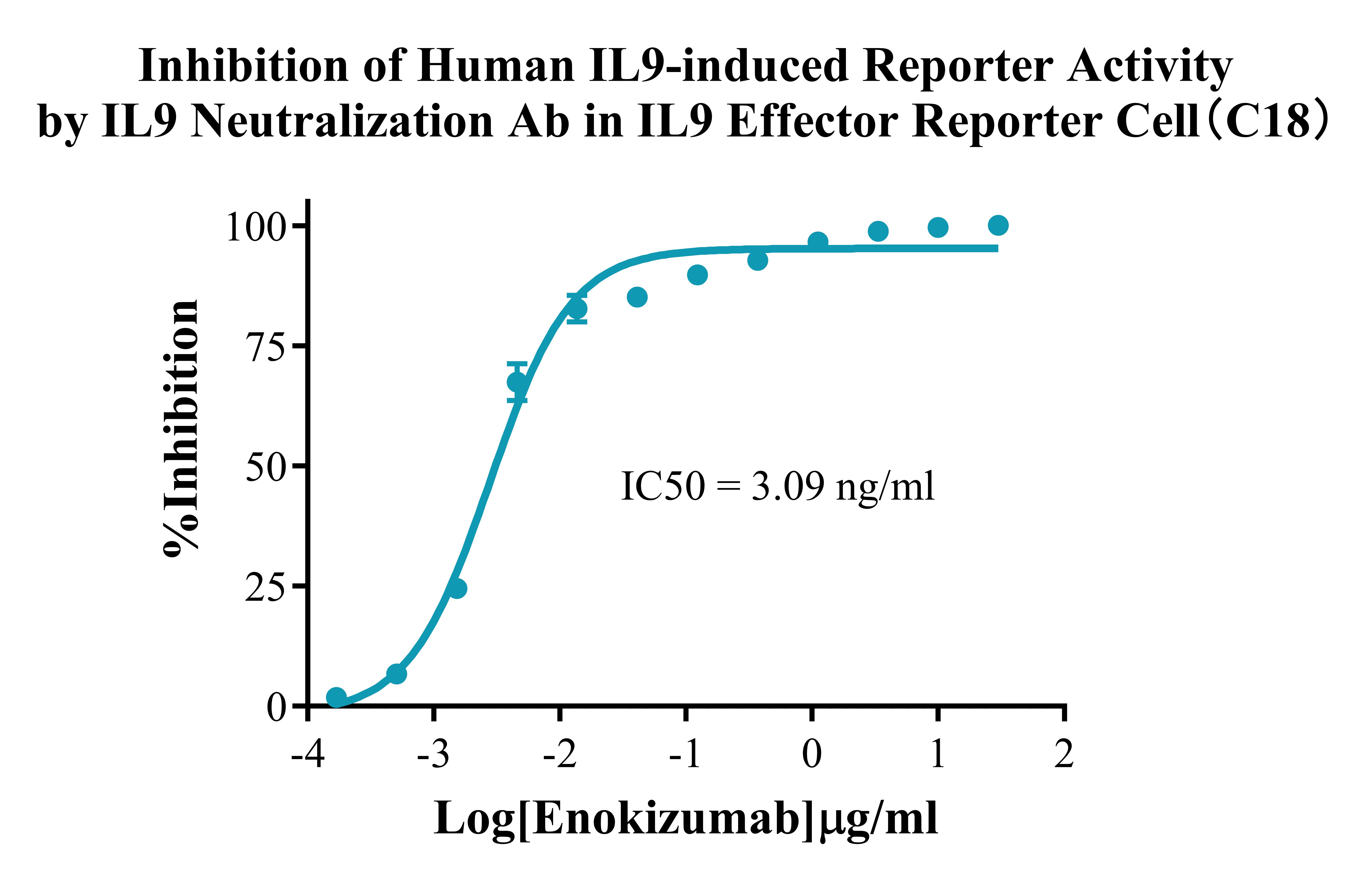 Figure 4.Inhibition of Human IL9-induced Reporter Activity by IL9 Neutralization Ab in IL9 Effector Reporter Cells (C18). |