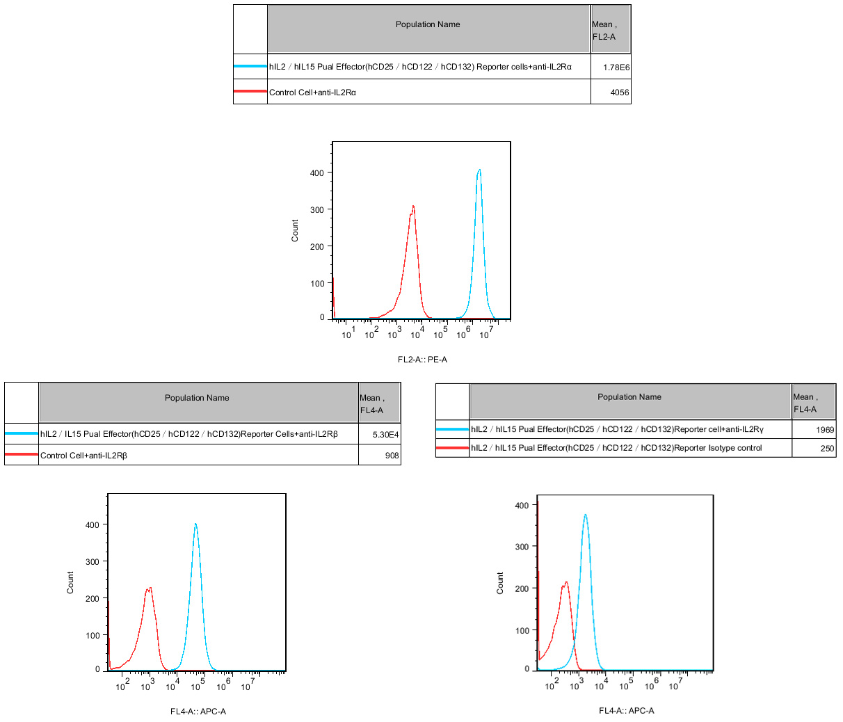 Figure 2. Recombinant hIL2/IL15 Dual Effector(hCD25/hCD122/hCD132) Reporter Cell constitutively expressing CD25 &CD122 &CD132. |