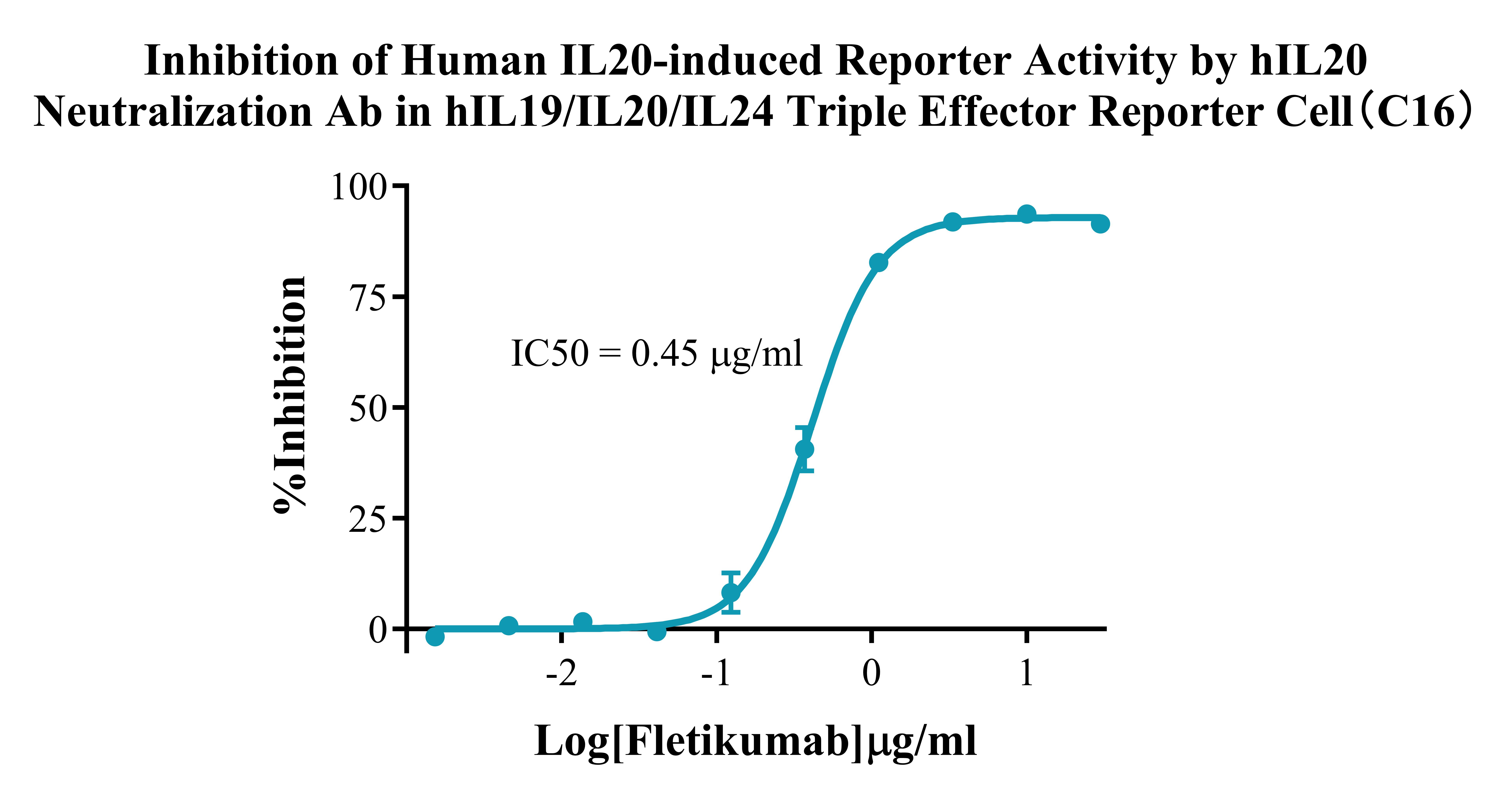 IV. Representative Data![]() Figure 2. Dose Response of Ligands in hIL19/IL20/IL24 Triple Effector Reporter Cell (C16). ![]() Figure 3. Inhibition of Human IL20-induced Reporter Activity by hIL20 Neutralization Ab in hIL19/IL20/IL24 Triple Effector Reporter Cell (C16). |