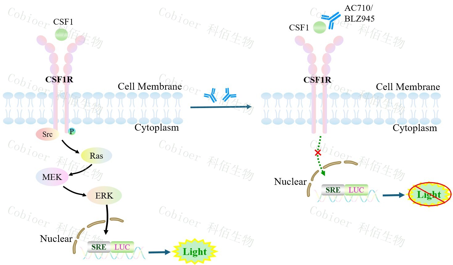 Figure 1. CSF1R SRE-Luc HEK293 細(xì)胞模型原理圖