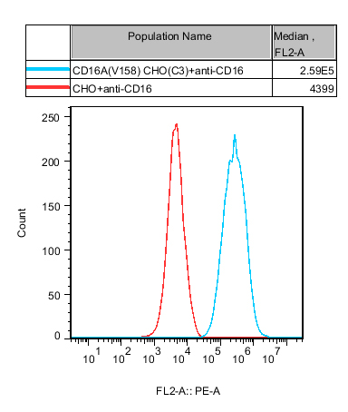 ![]() Figure 1. Recombinant CD16A(V158) CHO constitutively expressing CD16A(V158). |