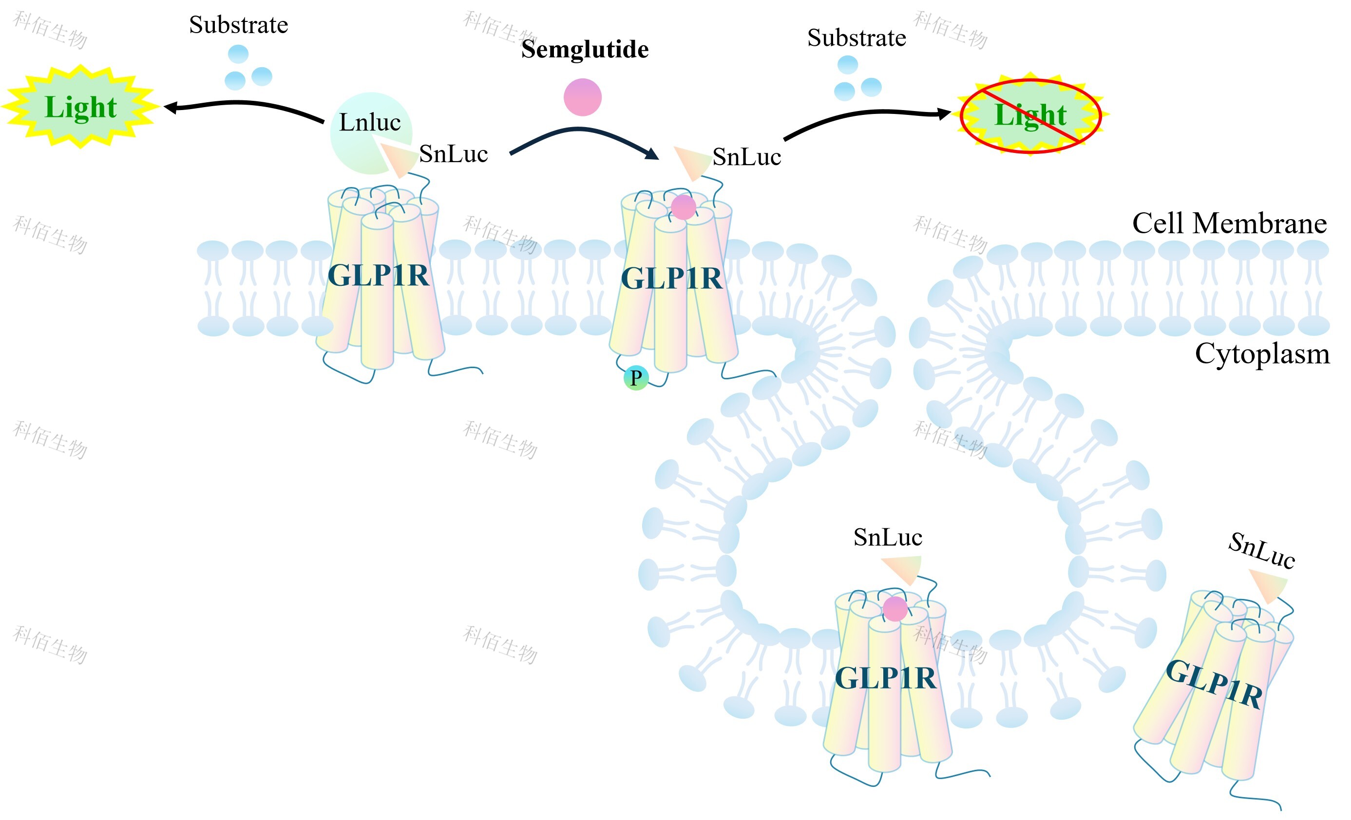 GLP1R Total Internalization HEK293 藥靶模型很好的模擬了體內(nèi) GLP1R 的信號轉(zhuǎn)導過程,原理見下圖所示。