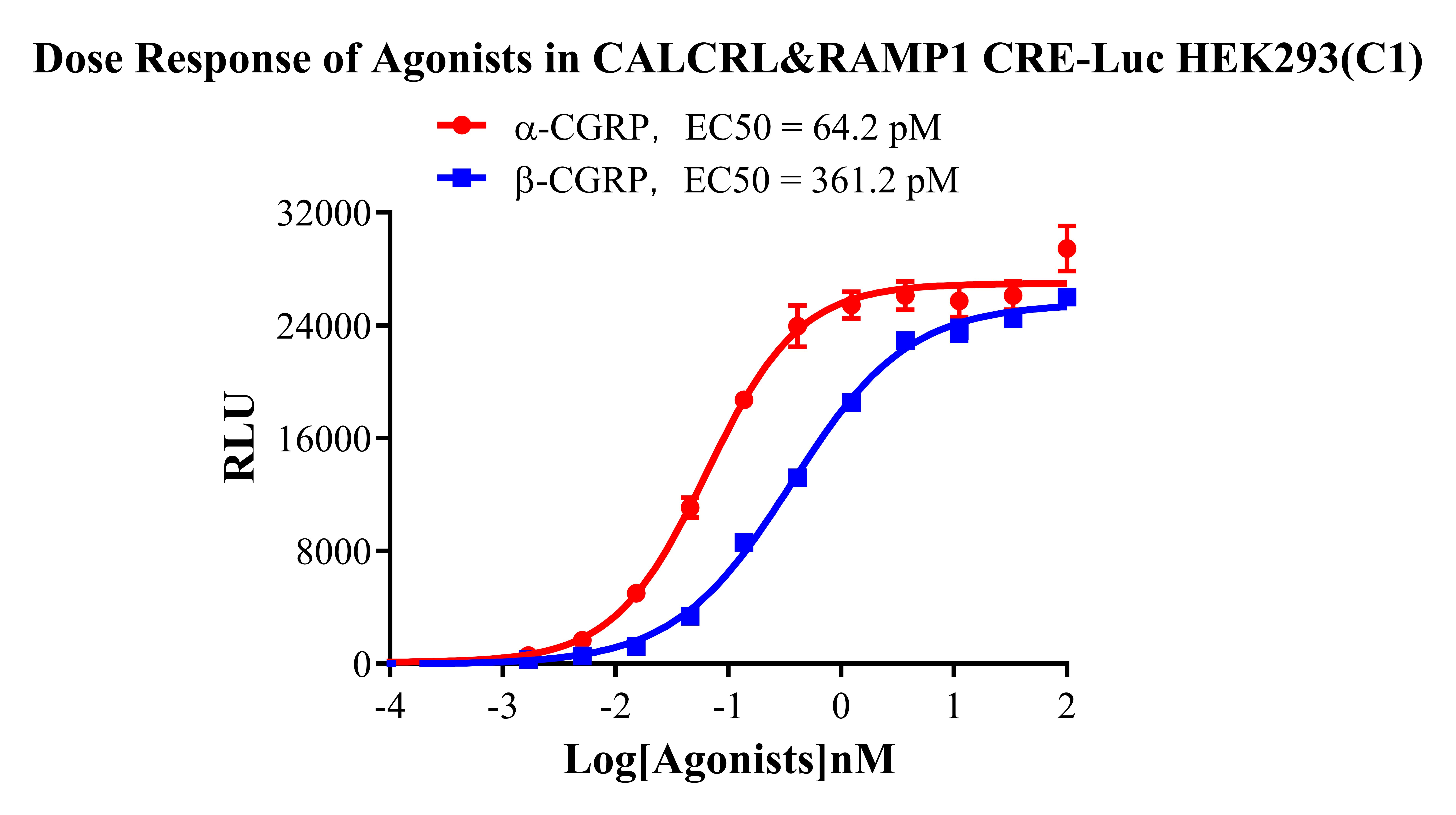 Figure 2. Dose Response of Agonists in CALCRL&RAMP1 CRE Luc Reporter HEK293(C1).