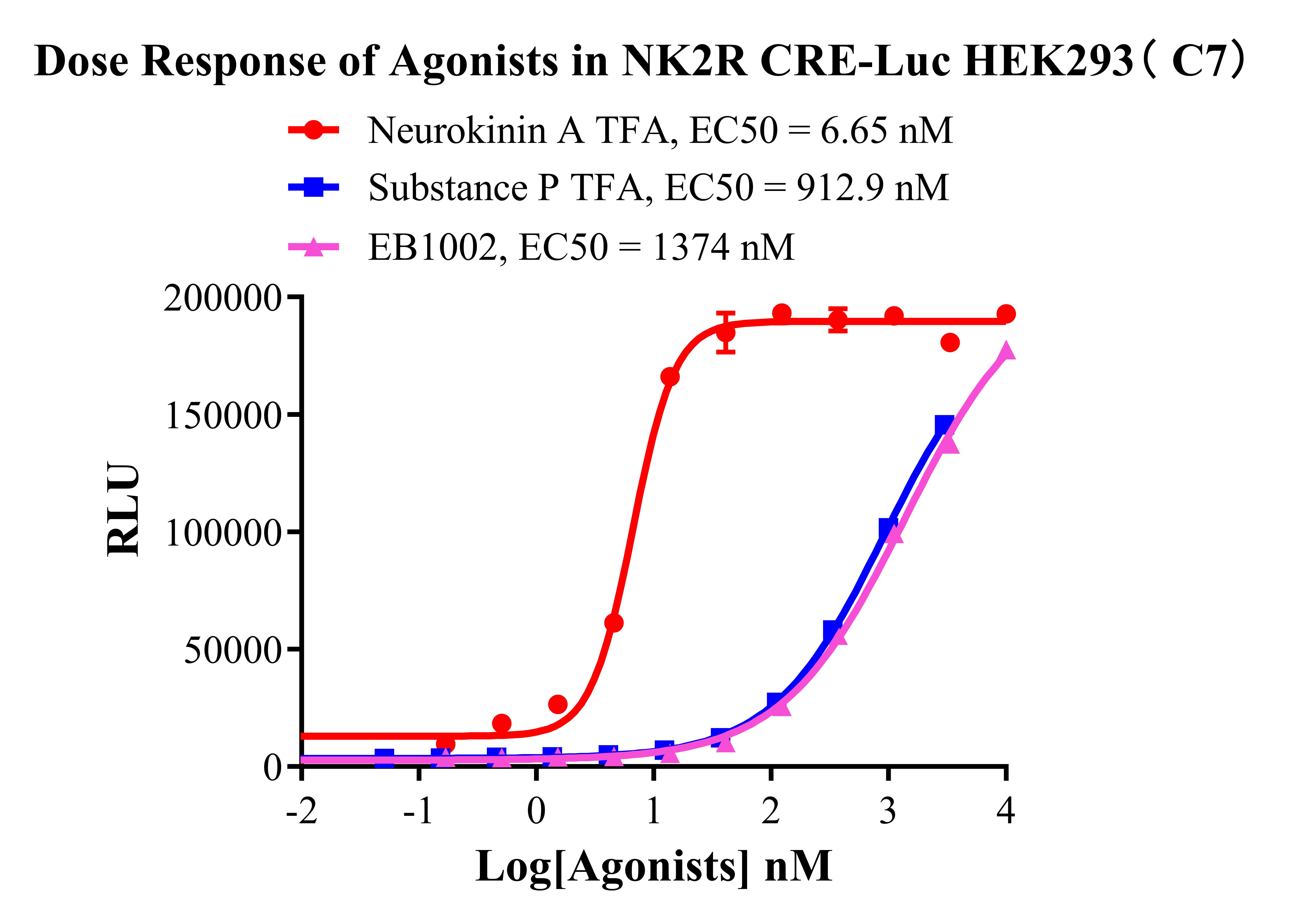 Figure 2. Dose Response of Agonists in NK2R CRE-Luc HEK293(C7). |