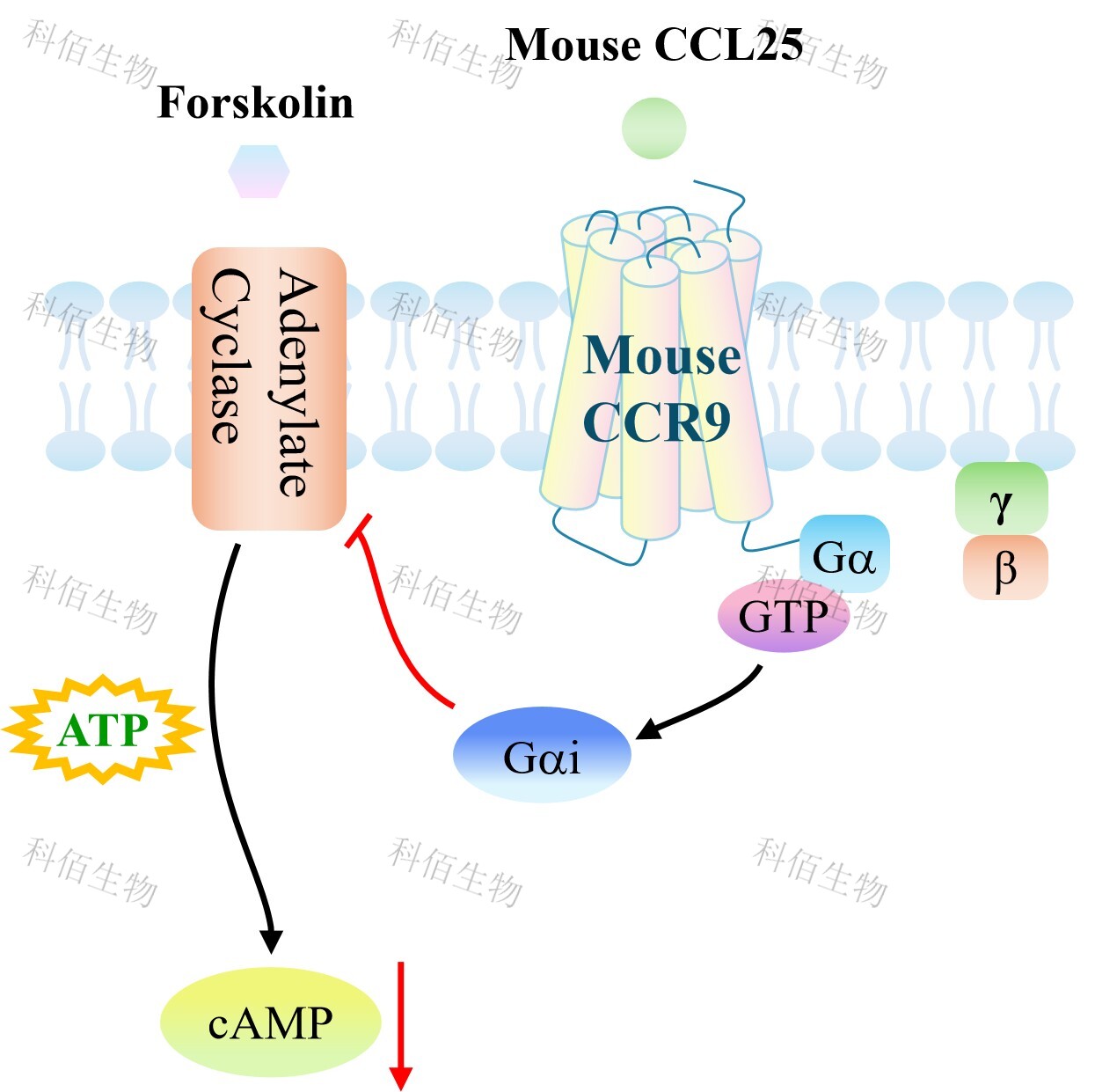 | 趨化因子受體 9 (chemokine receptor 9,CCR9),屬于β趨化因子受體家族。它由轉(zhuǎn) 錄本 A(369 個氨基酸,42 kDa)和 B(357 個氨基酸,40.8 kDa)組成。CCR9 主要分布 在未成熟的 T 淋巴細胞和腸細胞表面,結(jié)合其特異性配體,在 T 淋巴細胞發(fā)育和組織特異性歸巢中發(fā)揮作用。研究證明,CCR9 在多種癌癥中高表達,是一種潛在的腫瘤生物標志物,可用于診斷和治療。 CCR9 被其特異性配體 CCL25 激活后,可以與許多信號通路相互作用,特別是與腫瘤化療耐藥和轉(zhuǎn)移有關(guān)的信號通路。 | |