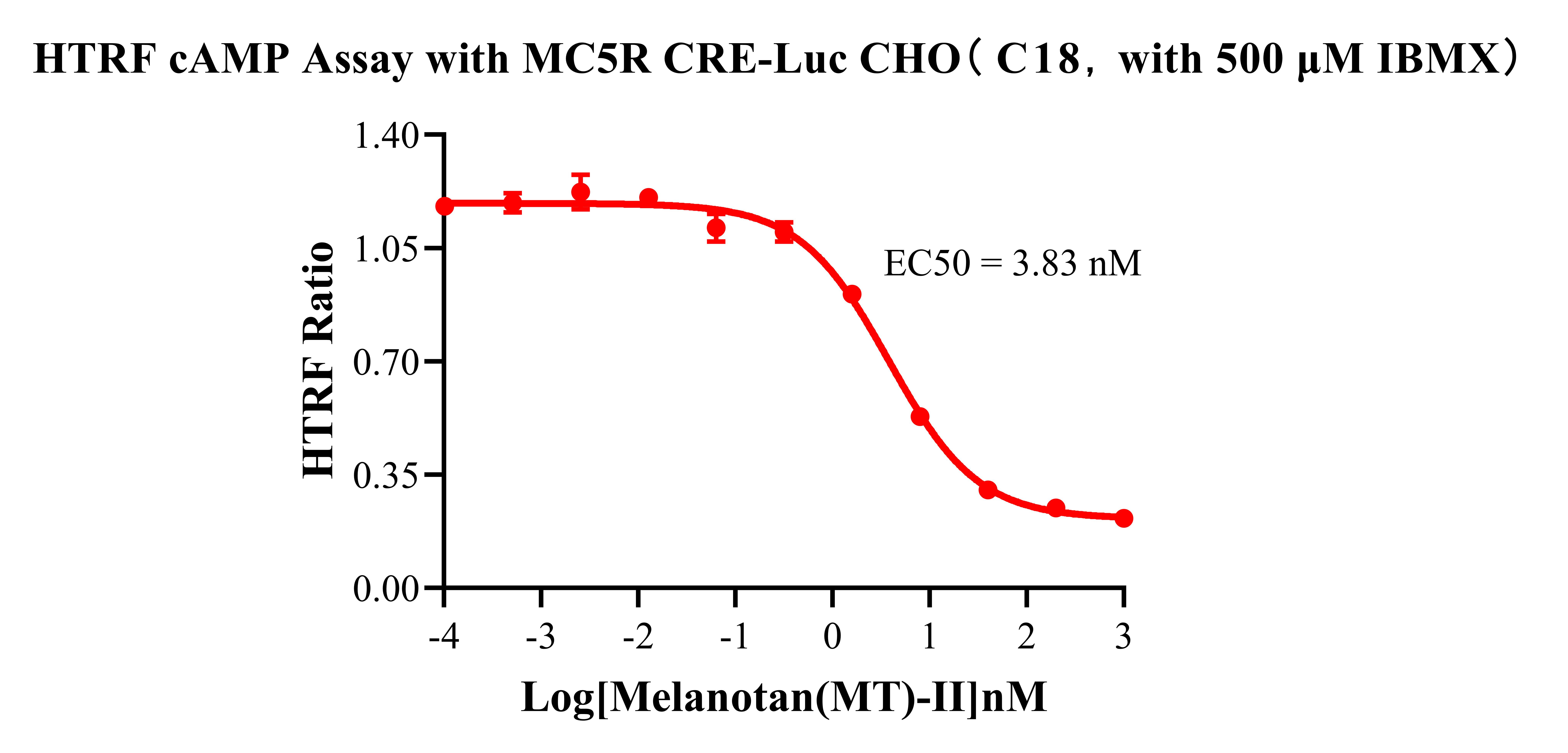 MC5R CRE-Luc CHO 細(xì)胞藥靶模型很好的模擬了體內(nèi) MC5R 的信號(hào)轉(zhuǎn)導(dǎo)過(guò)程。 |