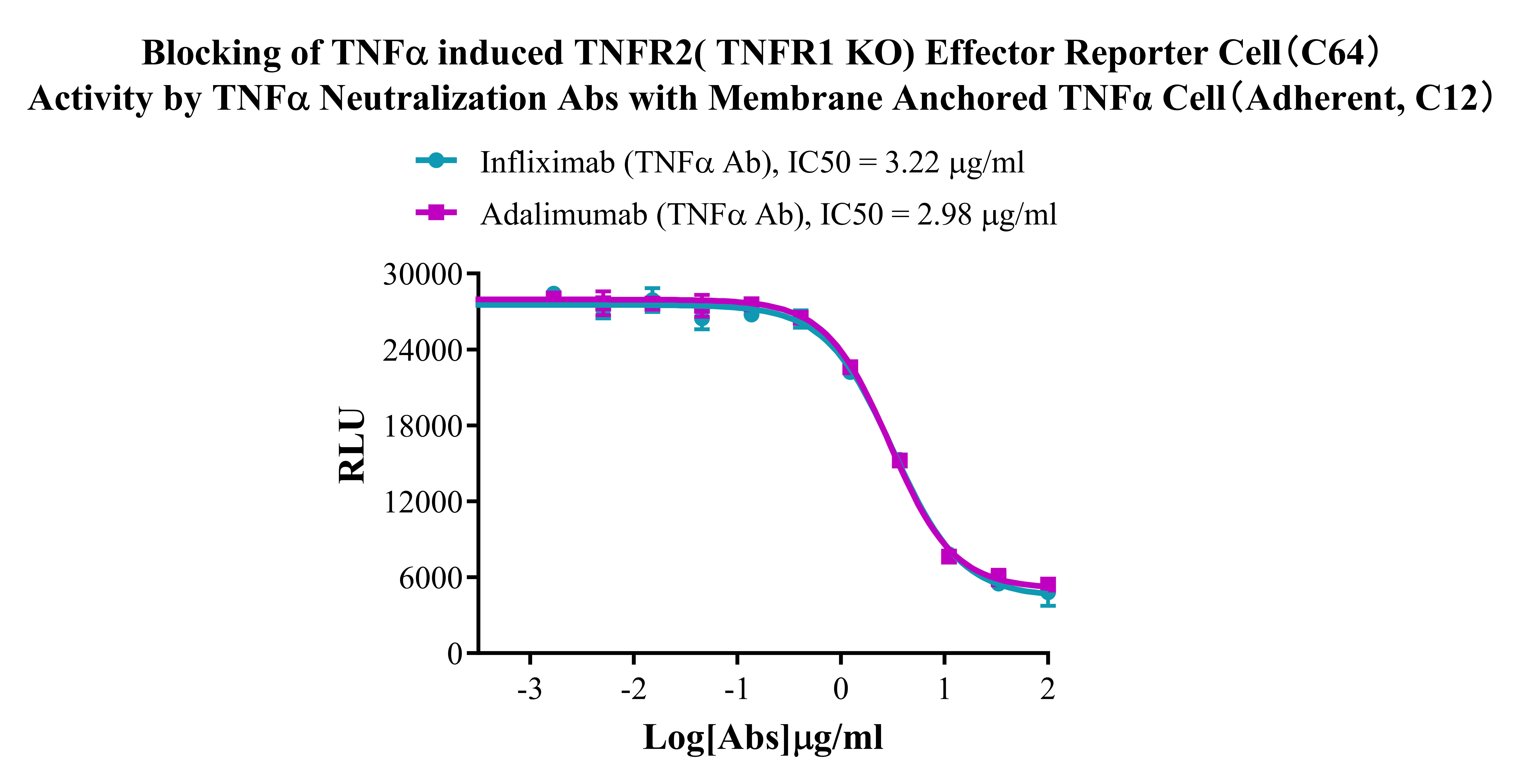 ![]() Figure 1. Sanger of TNFR2( TNFR1 KO) Effector Reporter Cell. ![]() Figure 2. Dose Response of TNFR2 Agonist Ab in TNFR2(TNFR1 KO) Effector Reporter Cell(C64). ![]() Figure 3. Dose Response of TNFR2 Agonist Ab in TNFR2(TNFR1 KO) Effector Reporter Cell(C64). ![]() Figure 4. Blocking of TNFα induced TNFR2( TNFR1 KO) Effector Reporter Cell(C64) Activity by TNFα Neutralization Abs with Membrane Anchored TNFα Cell(Adherent, C12). ![]() Figure 5. Blocking of TNFα induced TNFR2(TNFR1 KO) Effector Reporter Cell( C64) Activity by TNFR2 Blocking Ab with Membrane Anchored TNFα Cell ( Adherent, C12). |