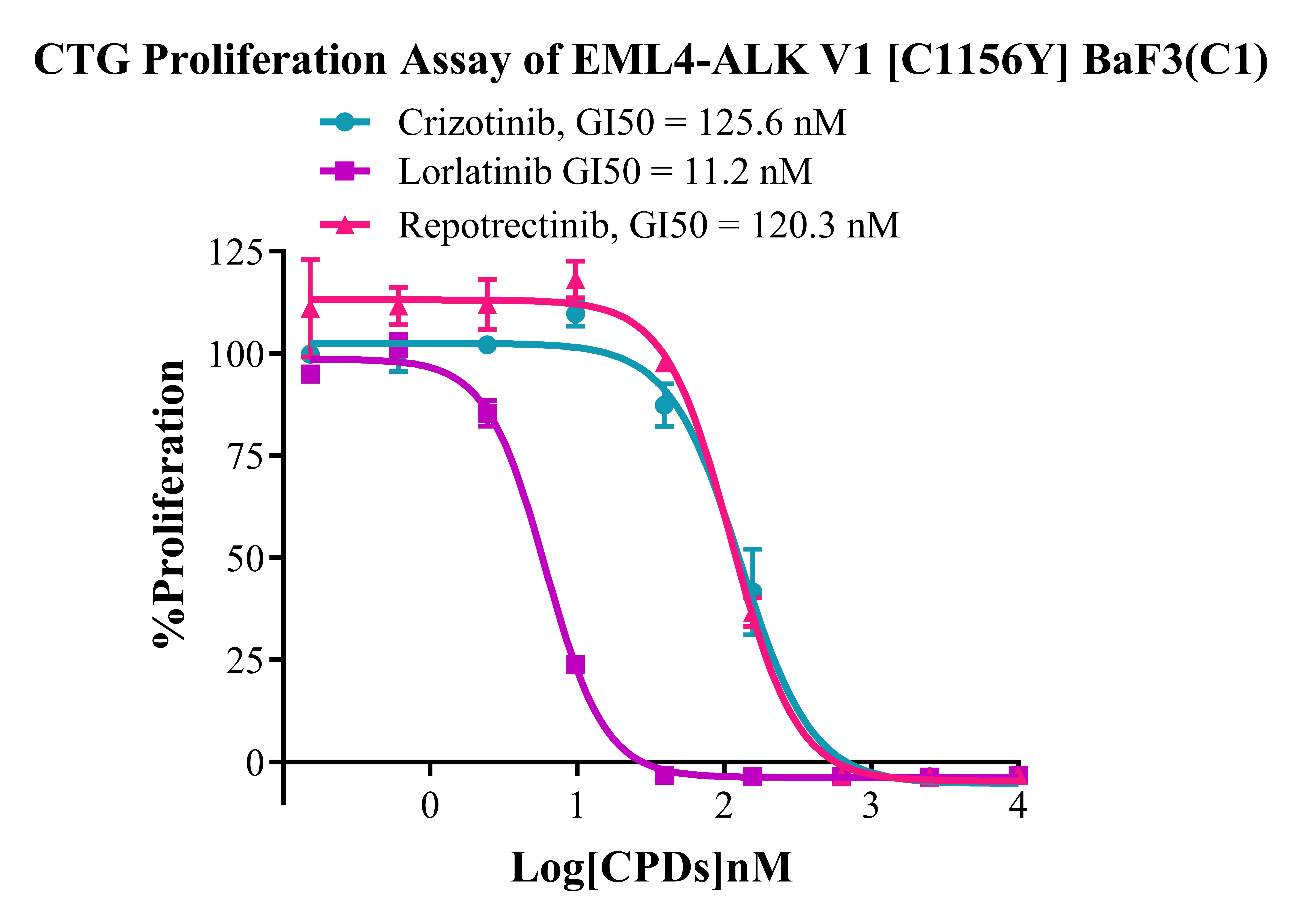 Figure 4. CTG Proliferation Assay of EML4-ALK V1 [C1156Y] BaF3 (C1). |