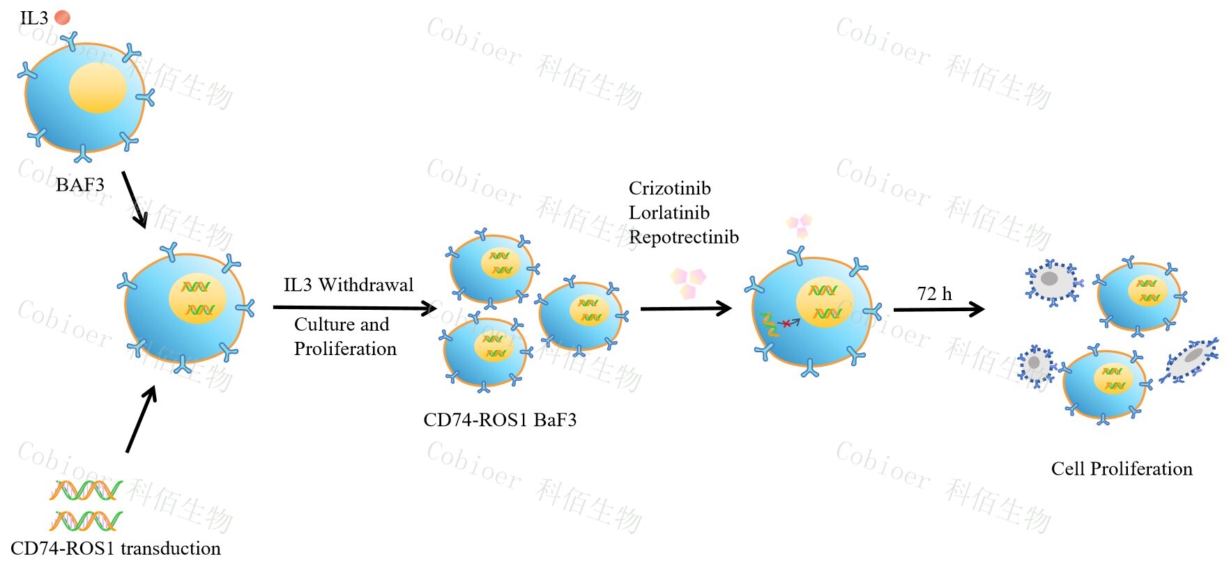 Figure 1. CD74-ROS1 BaF3 細(xì)胞的構(gòu)建原理圖