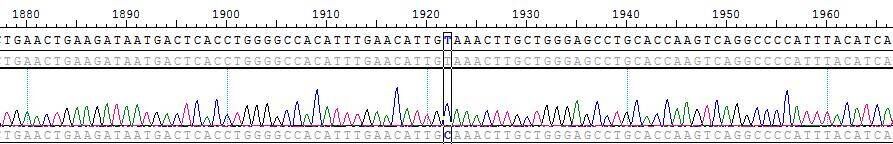 1.Sanger of PDGFRA V658A-R558_I565del/Baf3