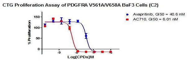 Figure 4. CTG Proliferation Assay of PDGFRA V561A/V658A BaF3 Cells (C2). |