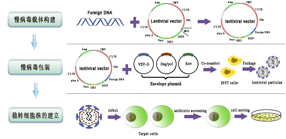 穩(wěn)定細胞株構(gòu)建的基本原理是用基因?qū)牍ぞ呋蚧蚓庉嫻ぞ?,改造原始細胞基因組,使改造后的細胞具有某些特定表型,并經(jīng)過抗性篩選或其他篩選方法,使其表型能長期傳代穩(wěn)轉(zhuǎn)。