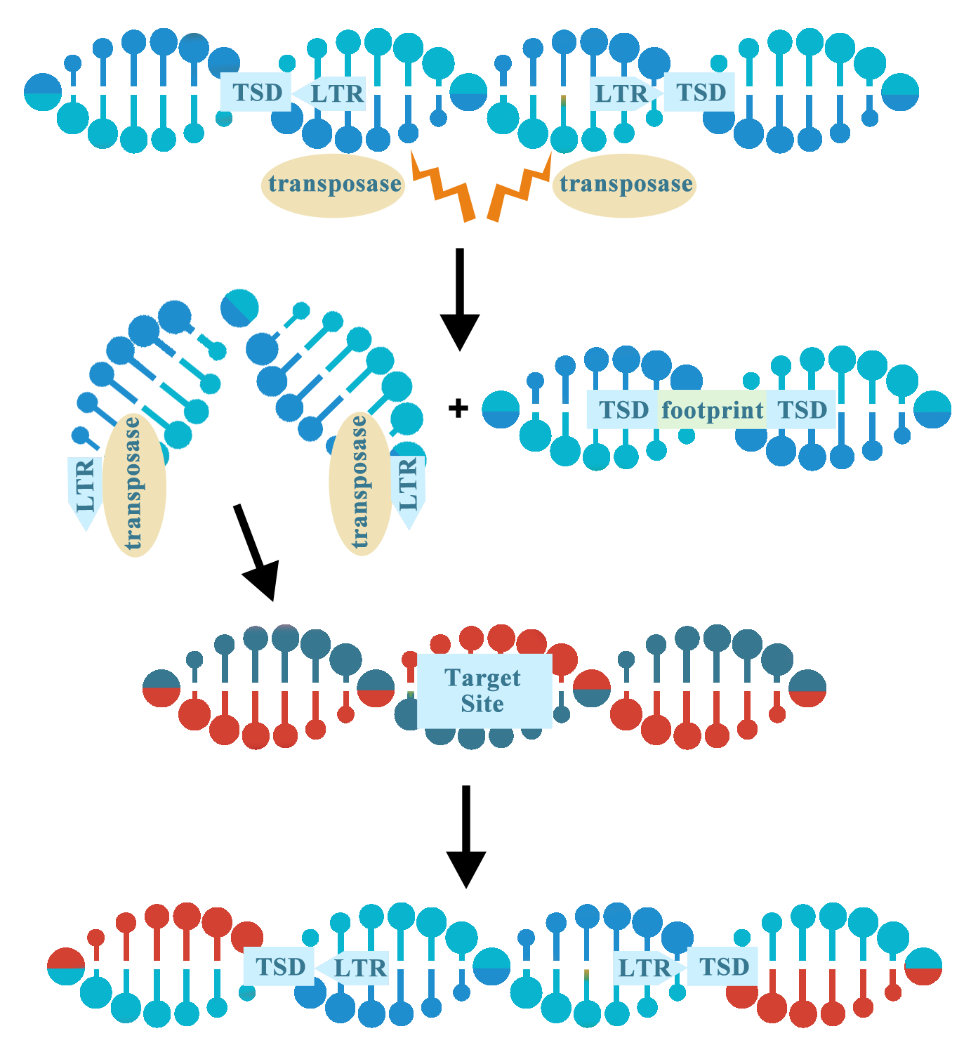 雖然轉(zhuǎn)座子有很多不同的類型,但DNA轉(zhuǎn)座子在實(shí)驗(yàn)室中用于基因組操作最為常見(jiàn)。在實(shí)驗(yàn)室中使用轉(zhuǎn)座子時(shí),轉(zhuǎn)座酶基因以反式形式提供,以便將目標(biāo)基因插入轉(zhuǎn)座子的長(zhǎng)末端重復(fù)序列(LTR)之間,類似于病毒載體的包裝過(guò)程。