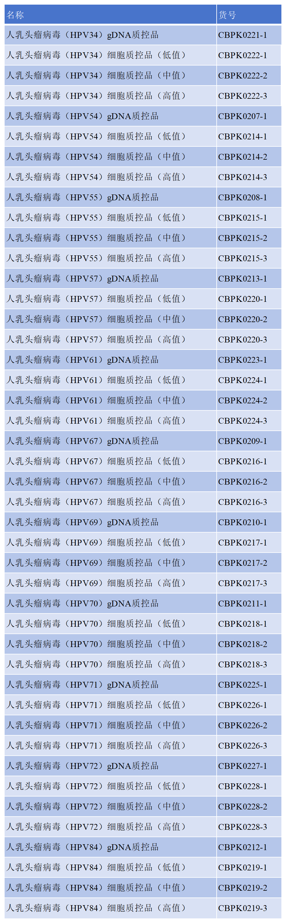 前期,科佰生物已經(jīng)推出了18種高危型和9種低危型的HPV分子診斷標(biāo)準(zhǔn)品,詳情可以點(diǎn)擊【免費(fèi)試用】人乳頭瘤病毒HPV核酸檢測標(biāo)準(zhǔn)品新品上線,可申請免費(fèi)試用 查看。