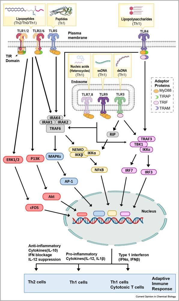 每個(gè) TLR 都有自己特定的組織定位和下游基因信號(hào)通路,數(shù)百種靶向各種 TLR 的配體已被鑒定并表征為疫苗佐劑,這為研究人員提供了精確定制具有特定免疫作用的佐劑的機(jī)會(huì)。
