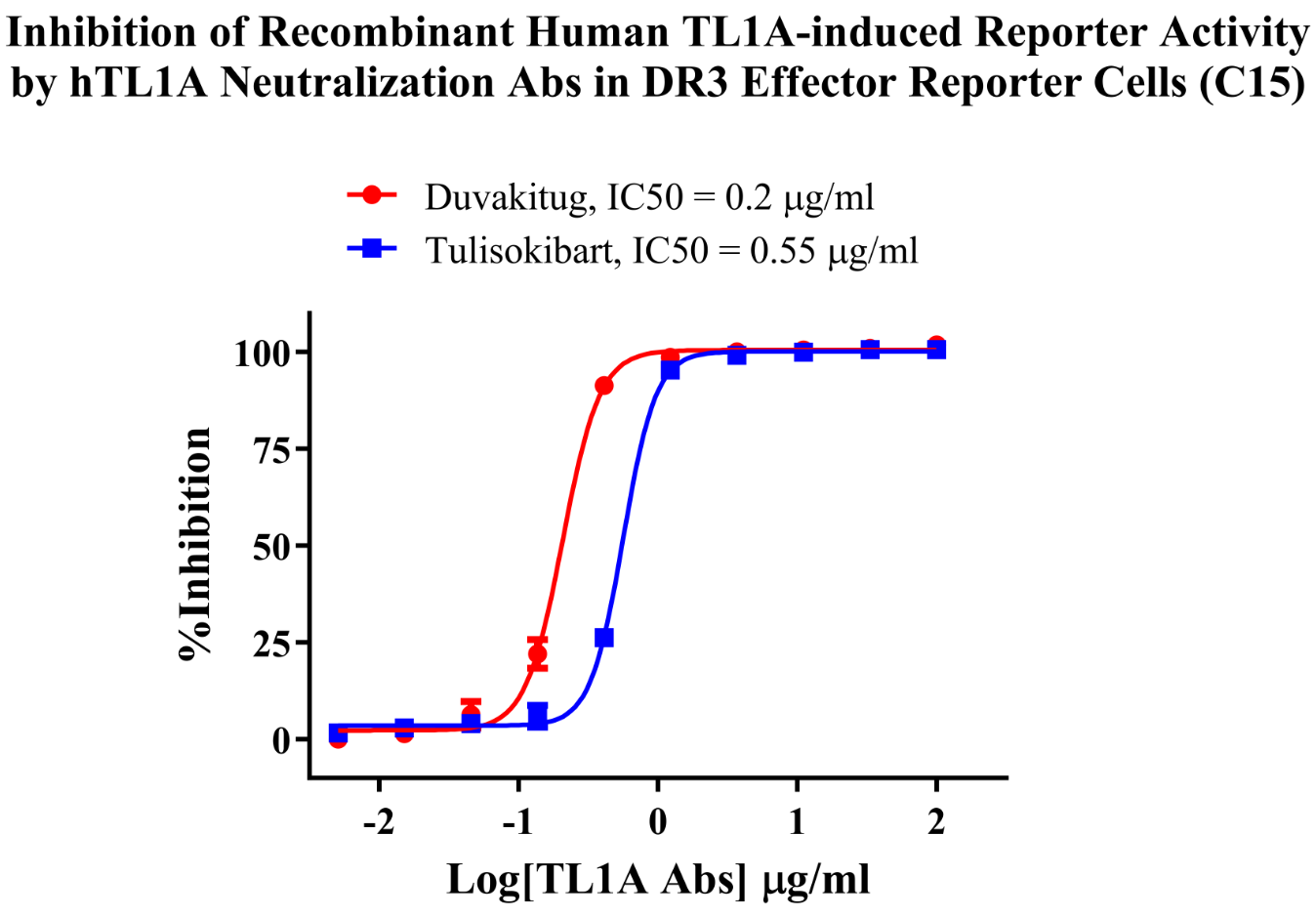 Figure 5. Inhibition of Recombinant Human TL1A-induced Reporter Activity by hTL1A Neutralization Abs in DR3 Effector Reporter Cells(C15).